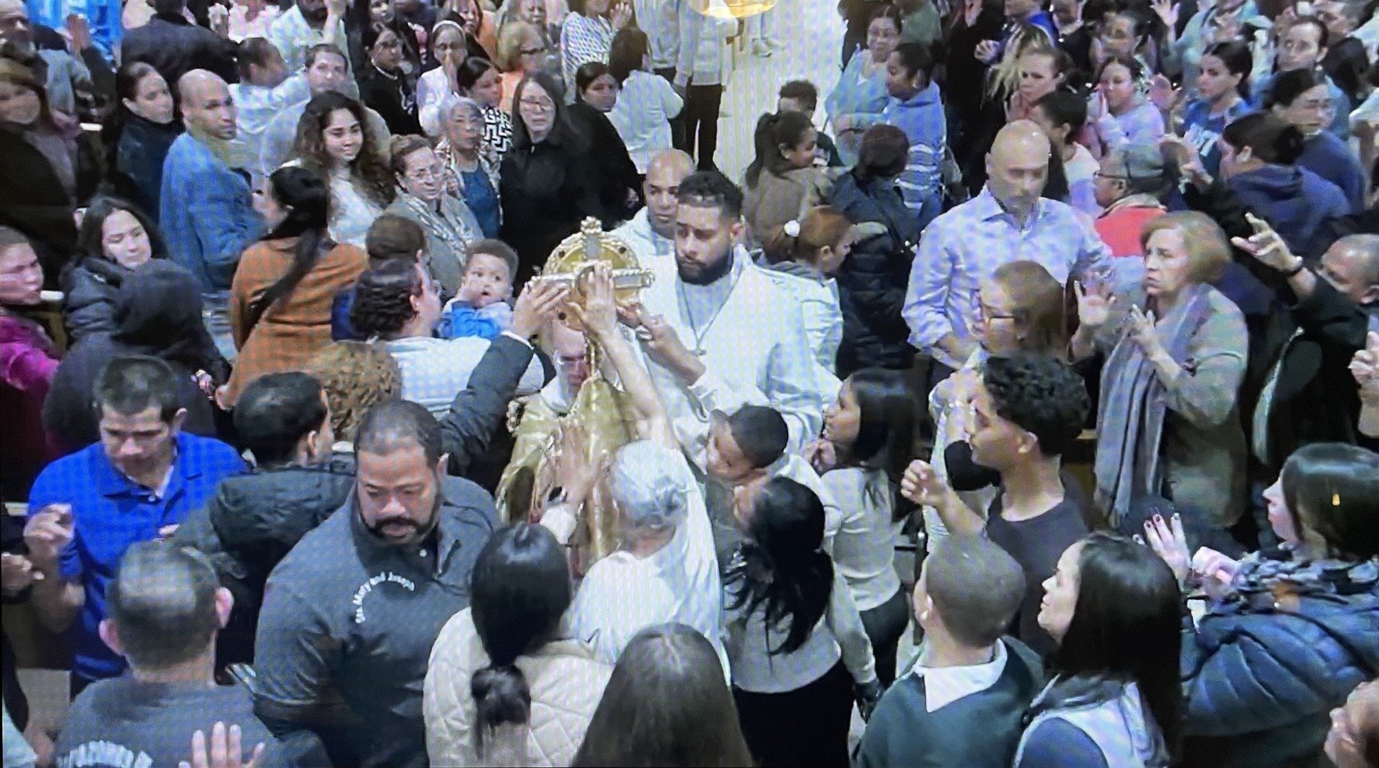 Our Lady of Altagracia, Protector of the Dominican Republic Sunday January 19th, at the 1:00pm Mass, so many of God's faithful children came together in and with the Dominican community to celebrate our Lady of High Grace (Altagracia), Protector of the Dominican Republic. The image of the Virgin de la Altagracia “Virgin of Highest Grace” has long been venerated in the Extremadura region of Spain. It has existed on the Caribbean Island of Hispaniola since the early 1500’s, when two Spanish brothers carried her image with them to their new home in Higuey, located in the southeastern corner of the island. The enthusiastic Dominican devotion to her, however, grows out of a popular legend. The story goes that an old mysterious man gave the image, in an almost miraculous way, to a father for his daughter who had requested it. The image later disappeared from the house and reappeared in a blossoming orange tree. This occurred several times. These events were interpreted to mean that the image did not belong to one family, but to all Dominicans and should be displayed publicly in the local parish. A larger temple was dedicated in 1572 and the current Basilica in 1972 to display the image of the “Highest Grace” or Divine Maternity.
